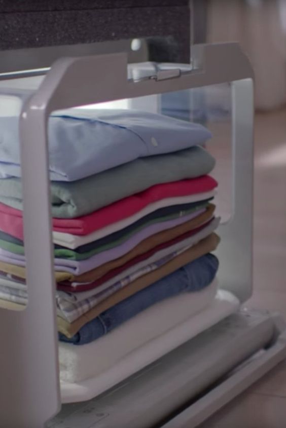 لباس ها را تحویل گرفته و با انتخاب روی صفحه تاچ، هر کدام را تحویل میدهد
